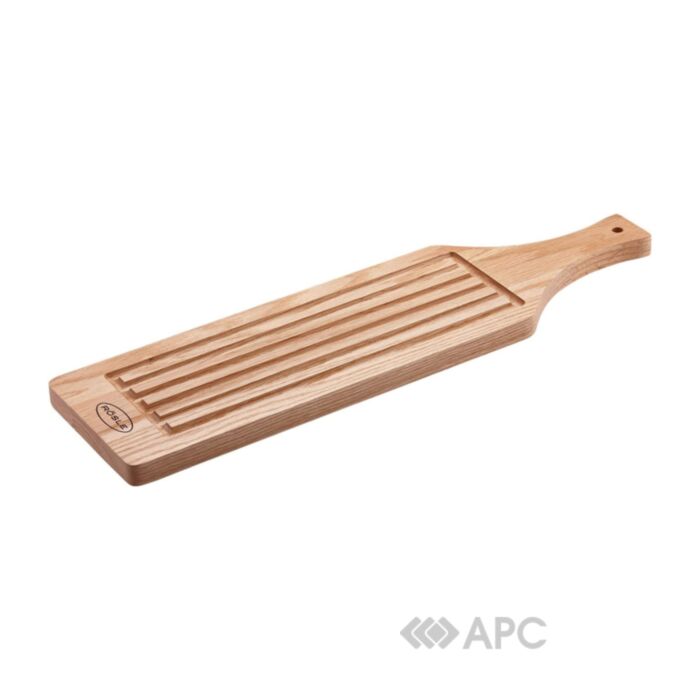 Дошка для сервірування Rosle — це спеціальний виріб німецького виробництва, що допоможе нарізати та подати хліб чи багет на стіл. Виготовляється з якісного, міцного дуба. Хребці, які знаходяться на поверхні, допомагають з легкістю, а також зручно нарізати хліб на скибочки. Знизу містить гумові накладки, що запобігають ковзанню. Красиво доповнює стіл, виглядає стильно та оригінально. Виріб не підходить для миття в посудомийній машині, але при правильному використанні не втрачає свою форму, а також є повністю екологічним. Довжина 54,7 см, ширина 15,2 см, товщина 2,5.