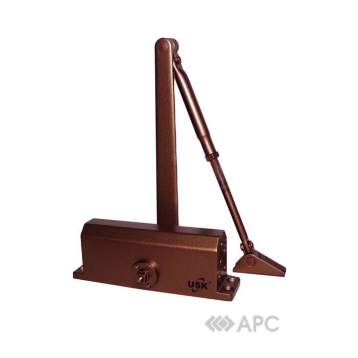 Дверний доводчик USK 604-D-BR допомагає не замислюватися про закривання дверей, адже дане пристосування бере це завдання на себе. Дотягувачі для дверей вже давно увійшли в побут та використовуються не лише в офісних та нежитлових приміщеннях, а й у будинках. Модель забезпечує плавне та щільне закривання дверей. Вага дверей не повинна перевищувати 100 кг.