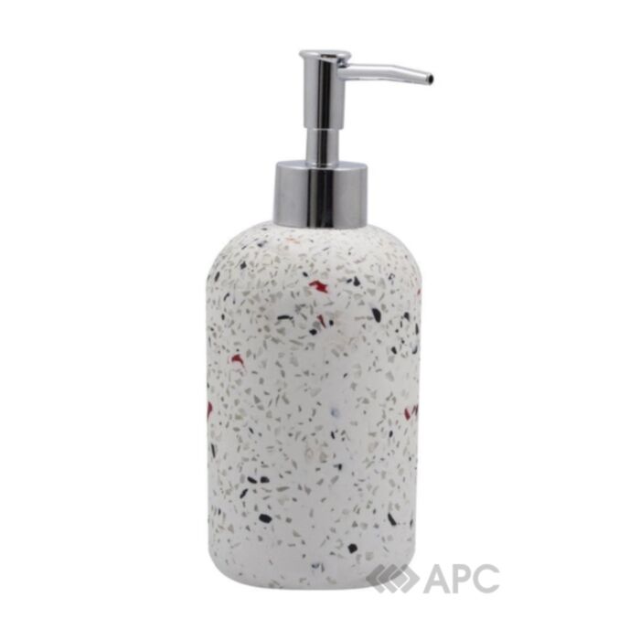 Дозатор для рідкого мила Trento Mosaic білий — це не тільки зручне рішення, але й унікальний елемент декору. Він дозволить просто та економно подавати мило та інші засоби гігієни в потрібній кількості. Основа виготовлена з полірезини, що є екологічним та зносостійким матеріалом, а також відрізняється вологостійкістю, що є необхідним для ванних кімнат. Помпа забезпечує легку подачу мила без зайвих витрат засобу. Дизайн являє собою лаконічну білу основу, що оздоблена кольоровими вкрапленнями та насадку з хромовим покриттям.