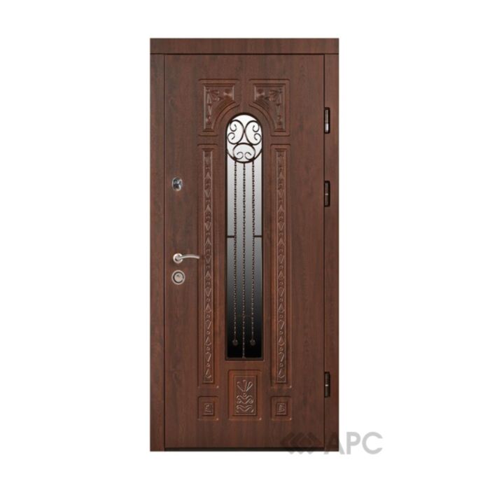 Міністерство дверей пропонує вашій увазі модель ПК-139, що входить в портфель Комфорт плюс. Зазначена серія об'єднує двері, які поєднують чудовий зовнішній вигляд і високу функціональність. Якщо вам необхідний безкомпромісний варіант, експлуатаційні та естетичні характеристики якого знаходяться на висоті, то варто затримати увагу та представленій моделі. Товщина металу двері становить 1,5 мм. Антизрізи петель захищають вашу оселю від проникнення навіть якщо зрізані петлі. Наповнювач з мінеральної вати забезпечує тепло- і звукоізоляцію на високому рівні. Якісне покриття порошковою фарбою надає конструкції міцності і довговічності, стійкості до зовнішнього механічного впливу. Головна перевага металевих дверей з полімерним покриттям – це підвищена стійкість до корозії протягом багатьох років.