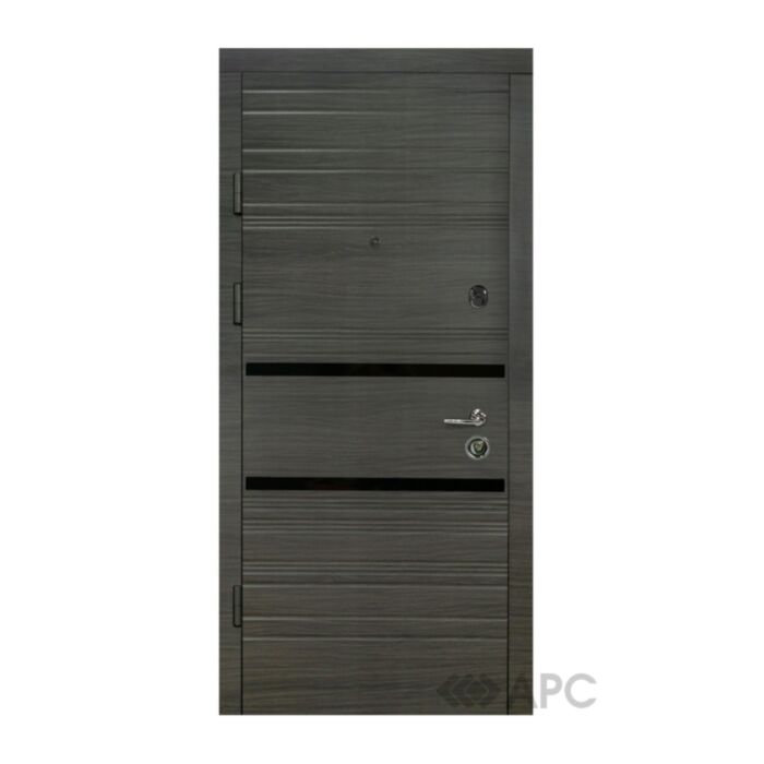 Двері вхідні Булат K-8 514/191 венге горизонт сірий/дуб пломбір 95*205 см ліві — це приємний дизайн та багатофункціональність, що гарантуватимуть безпеку та надійність. Їхня конструкція являє собою утеплену мінеральною ватою та броньовану сендвіч-панель. Вона оснащена італійською гарнітурою: верхнім замком КАLЕ 257 товщиною 16 мм, нижнім замком КАLЕ 252 товщиною 16 мм, нічним засувом та ручкою овальної форми із хромовим покриттям. Використані матеріали відрізняються особливою міцністю, а також є стійкими до вологи, вогню, ударів та інших пошкоджень, тому гарантуватимуть безпеку та збереження початкового вигляду протягом всього терміну експлуатації. Дизайн зовнішньої панелі являє собою покриття з текстурою дерева, що оздоблене стильними горизонтальними лініями. Внутрішня панель комплектується поверхнею білого кольору з імітацією дерева з декоративними деталями. Таке оформлення дозволить створити приємне враження та комфорт одразу при вході в приміщення.
