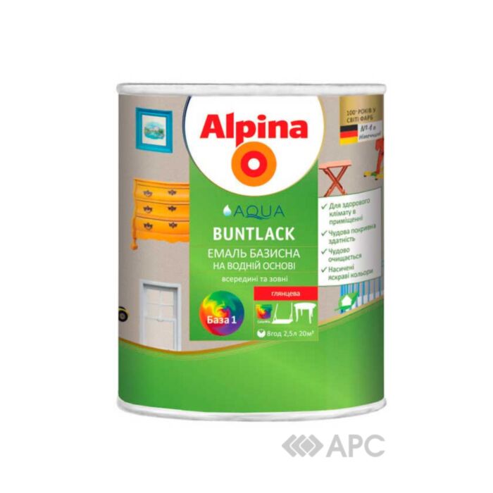 Емаль акрилова Alpina Aqua Buntlack GL глянцева B1 0,75 л в каталозі ARS
