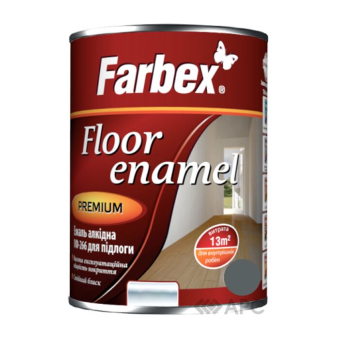 Емаль алкідна Farbex ПФ-266 сіра 2,8 кг характеризується утворенням гладкого, рівномірного та глянцевого покриття. Він вирізняється тривалим збереженням інтенсивного блиску та насиченості кольору. Покриття є стійким до звичайних експлуатаційних навантажень, а також до впливу води та стандартних побутових миючих засобів. Засіб розроблено для декоративно-захисного фарбування дерев'яних підлог та інших поверхонь з дерева або мінеральних матеріалів (таких як бетон і цемент) у внутрішніх приміщеннях.