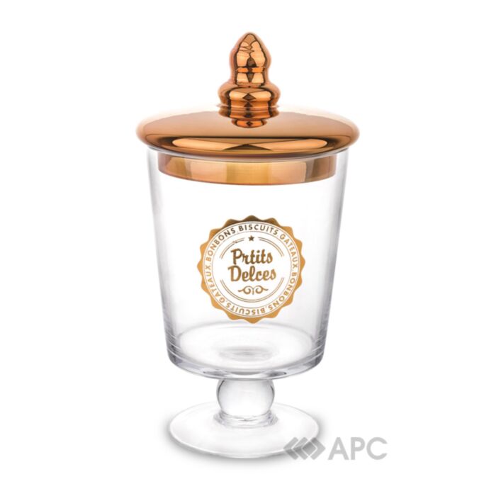 Ємність скляна Art-Pol — це спеціальна банка для солодощів, що прекрасно доповнює кухонну стільницю, журнальний столик або ж ресепшн, адже має компактні розміри. Виглядає дуже стильно, вишукано та дорого, підійде для будь-якого дизайну інтер’єру. Виготовлена зі стійкого, прозорого скла, містить декоративний напис та кришечку у мідному кольорі, яка запобігає осіданню пилу на продукцію. Розміщується на спеціальній ніжці, що додає моделі елегантності. Розміри товару 25х12,5 см.