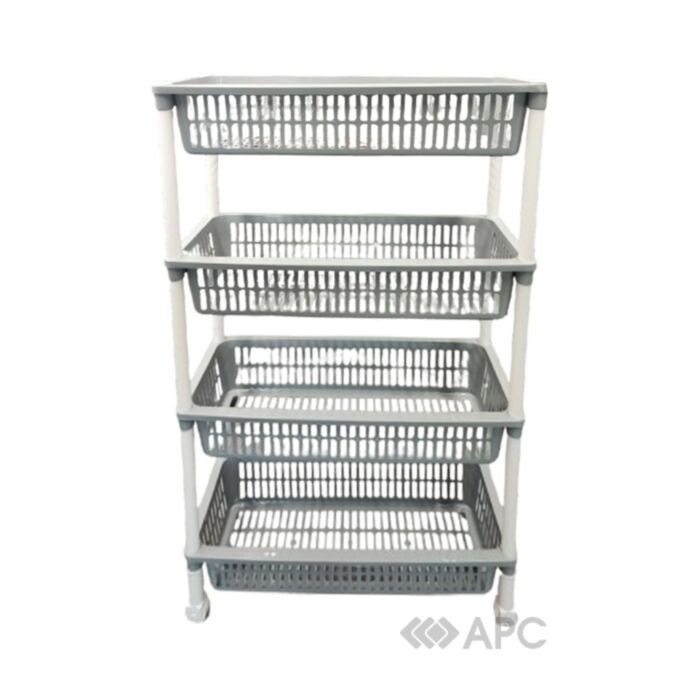 Етажерка Bursev на 4 яруси пластикова використовується для зберігання овочів, фруктів, круп, кухонного начиння та будь-яких інших побутових речей. Виріб легко пересувається з місця на місце, обладнаний зручними кошиками та швидко збирається, якщо вам потрібно його перевезти або заховати в комірчину. Конструкція з міцного пластику стійка до механічних пошкоджень, миється м'якими засобами та витримує велике навантаження.