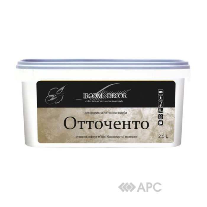 Фарба декоративна Ircom Decor Отточенто 2,5 л - високоякісне та інноваційне рішення для творчого декорування стін та елементів інтер'єру. Підходить для застосування на різноманітних об'єктах – від житлових приміщень до громадських та місць відпочинку. Завдяки специфічній формулі та матеріалам, вона дозволяє створювати неповторні декоративні елементи, надаючи приміщенню естетичний та стильний вигляд. Фарба має високу пластичність, що дозволяє легко наносити її навіть для тих, хто не є професійним майстром. Застосовується на різних поверхнях, таких як цементні штукатурки, бетон, гіпсокартон, ДВП, ДСП та інші, забезпечуючи стійкий та міцний фініш. Ircom Decor Отточенто вирізняється не лише ефектом срібного відливу, але й матовим покриттям після висихання. Це надає приміщенню особливий шарм та вишуканість. Завдяки можливості колорування пігментними пастами, ви можете створити власний колір, що відповідає вашому індивідуальному бажанню.