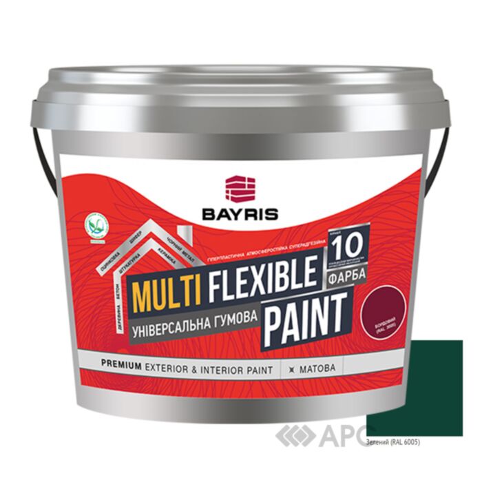Матова гумова фарба від Bayris використовується для фарбування дерев’яних, гіпсокартонних, оштукатурених, зашпакльованих поверхонь, фасадів будинків, дахів, огорож, металевих водостічних труб та ін. Універсальний засіб виконує захисно-декоративну функцію, володіє високим рівнем адгезії до поверхонь. Застосовується як для внутрішніх, так і для зовнішніх робіт.