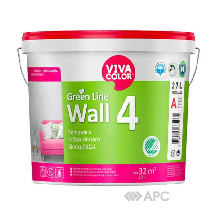 Фарба інтер'єрна Vivacolor Wall 4 A - це глибокоматовий вододисперсійний продукт, призначений для внутрішніх робіт. Завдяки своїй високій якості, вона відповідає класу 1 EN 13300 за стандартом ISO 11998, що свідчить про легкість очищення поверхні. Ідеально підходить для фарбування стін у сухих приміщеннях, таких як спальні, дитячі кімнати, вітальні, офіси, школи, дитячі садки та інші громадські приміщення. Утворює гладку матову поверхню, яка допомагає приховати дрібні дефекти на поверхні та надає чудовий результат. Виріб належить до лінійки Green Line та сертифікований екологічним знаком Nordic Swan Ecolabel. Також фарба отримала схвалення від Союзу з астми та алергії Фінляндії. Вона містить мінімальну кількість летких органічних сполук (ЛОС), що робить її екологічно безпечною.