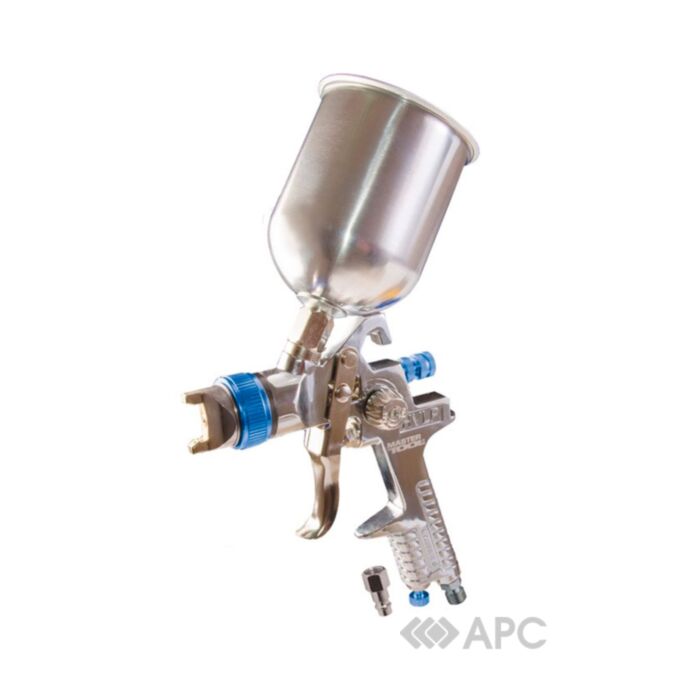 Фарбопульт пневматичний Mastertool 80-8905 - інструмент для швидкого та рівномірного нанесення лакофарбових сумішей на різноманітні матеріали: дерево, метал, пластик та інші. Перевагою пристрою є можливість за малий період часу обробити великі поверхні. Живлення даної моделі здійснюється за допомогою компресора. Алюмінієвий резервуар знаходиться зверху, що дає можливість працювати з в’язкими матеріалами, які будуть поступати до пістолета під власною вагою. Система розпилення у даної моделі - HVLP (High Volume Low Pressure). Вона дозволяє отримати понижений тиск на виході, а також характеризується високим коефіцієнтом переносу фарби (від 65%). Прилад обладнаний перехідником на 1/4”, регуляторами форми факела, подачі повітря та подачі фарби.