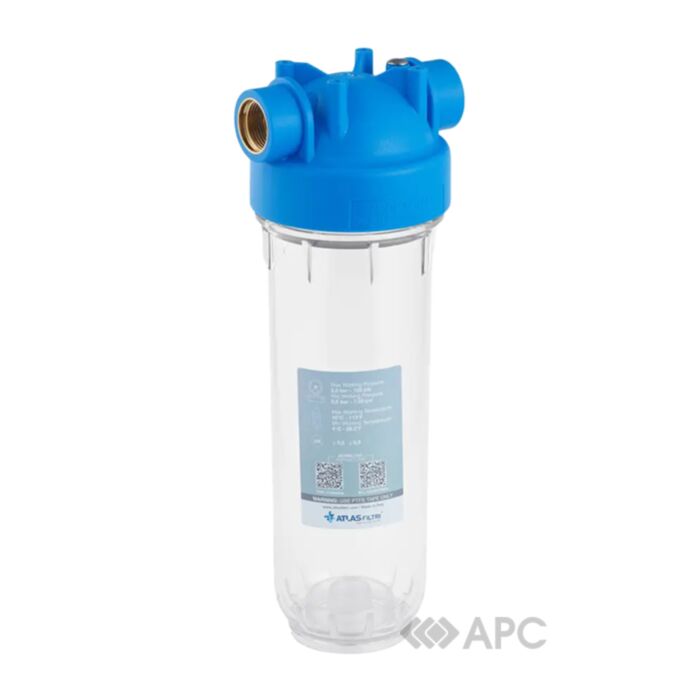 Фільтр-колба Atlas Filltri DP 10 Mono 3/4" CV029892 – це корпус для розміщення змінного фільтра очищення проточної води. Залежно від потреб можна поєднувати з вугільним, механічним, пом’якшувальним картриджем. В комплекті йде кронштейн і ключ. Простий у монтажі, підключення здійснюється на внутрішнє різьблення ¾, робочий тиск – 8 атм. Максимальний температурний режим – 45° С. Принцип роботи полягає у проходженні водопровідної води через колбу з картриджем та отримання чистої на виході. Використовуються в кухні для очищення питної води, у ванній – для зменшення кількості хлору.