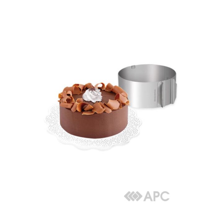 Регульована форма для торту кругла Tescoma DELICIA - дозволяє приготувати торт діаметром від 16 см до 30 см. Форма легко і швидко розширюється і підлаштовується під потрібний розмір і круглий корж випікається в духовці на деку, як в класичній формі для торта.