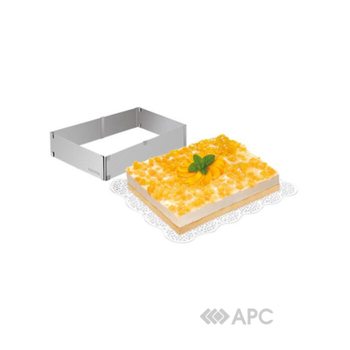 Регульована форма для торту прямокутна Tescoma DELICIA - дозволяє приготувати торт максимальним розміром 50x34 см. Форма легко і швидко розширюється і підлаштовується під потрібний розмір і прямокутний корж випікається в духовці на деку, як в класичній формі для торта.