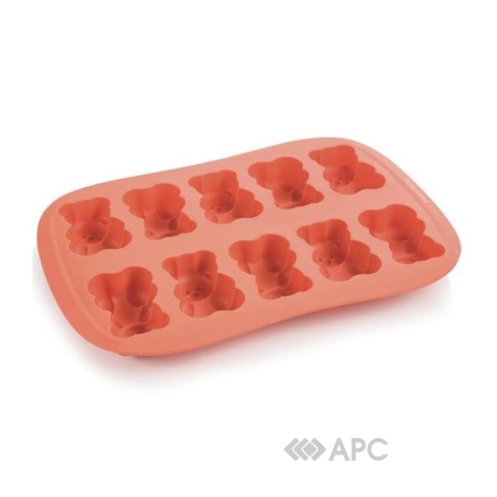 Форма силіконова Tescoma DELICIA — це посудина для виготовлення шоколадних, бісквітних, мармеладних та іншого роду десертів у вигляді ведмедиків. Підійде для будь-кого, хто хоче подужати кондитерське мистецтво та створити свої ідеальні солодощі. Виготовляється із термостійкого, гнучкого силікону, який витримує температуру до 230°C, а також дозволяє без проблем дістати ведмедика з виробу. Такий аксесуар не пригорає, а рівномірно і швидко нагрівається. Легко миється, допускається використання в посудомийній машині. Водночас можна виготовити 10 десертів.