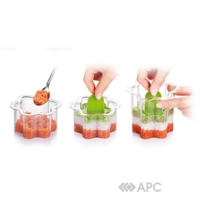 Форми для сервірування страв Tescoma Presto Food Style відмінно підходять для приготування салатів чи будь-яких інших кулінарних рецептів з багатошаровою начинкою. За допомогою таких кухонних помічників Ви створите красиві та апетитні делікатеси унікального дизайну у формі квітів. Страви у такому вигляді не лише налаштовують на прийом їжі, а й дуже стильно виглядають на святковому столі. Форми легкі у користуванні та догляді.