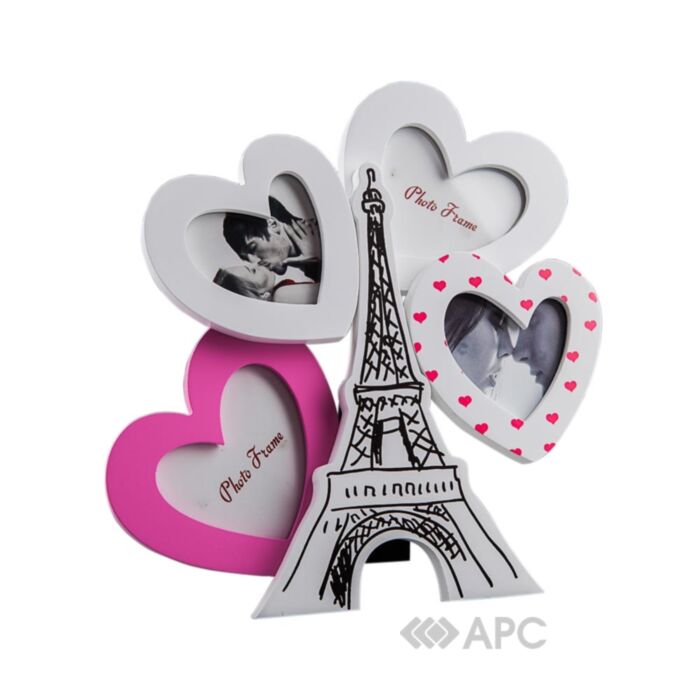 Стильна фоторамка Elisey 034TP 26 см виконана у вигляді однієї з найвідоміших пам’яток романтичного Парижу - Ейфелевої вежі. Композиція налічує чотири рамки у формі сердечок. Така модель може помістити ваші фотоспогади з поїздки у Францію, або ж стати поштовхом для нових подорожей.
