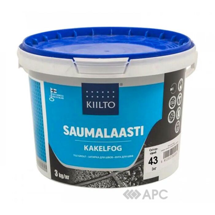 Фуга Kiilto 43 світло-сіра 3 кг - це глибокоматова суміш, до складу якої входить цемент з полімерами. Розбавляється водою і використовується всередині і зовні будівлі.