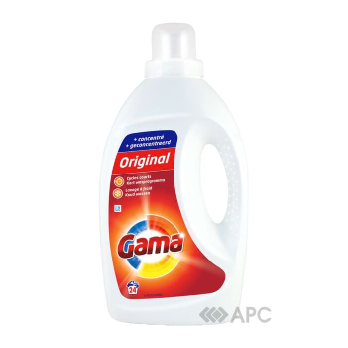 Гель для прання Gama — один із найефективніших продуктів, що ретельно очищує навіть застарілі, стійкі плями. Зручна консистенція дозволяє заощадливо його використовувати, тому банки 1200 мл вистачає на 24 циклів прання. Унікальна формула не руйнує волокна, а одяг набуде приємного аромату.  Засіб відмінно діє за будь-яких температур, типів тканин, забарвлення.