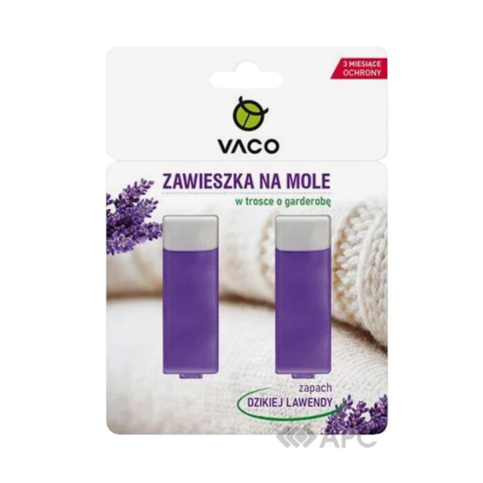 Гелева підвіска від одягової молі Vaco Лаванда 2 шт - є надійним засобом для усунення молі та її личинок з гардеробу. Вона володіє високою ефективністю і допомагає позбавитися від комах на тривалий період часу. Призначена для застосування в шафі та має приємний ненав'язливий аромат лаванди.