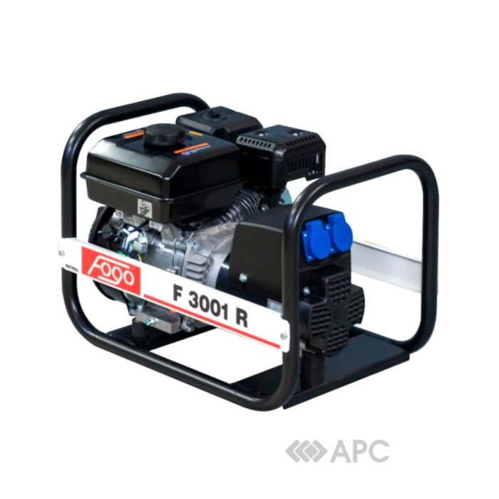 Бензогенератор Fogo F 3001R обладнаний ручним стартером. Двигун генератора однофазний, бензиновий, 4-х тактний. Потужність приладу складає від 2,5 до 2,7 кВт. Паливний бак розрахований на 3,6 л. При цьому витрата палива всього лише 1,4 л/год. Автономність роботи до 2,5 год, що є досить економічним показником. Генератор оснащений датчиком контролю рівня масла.