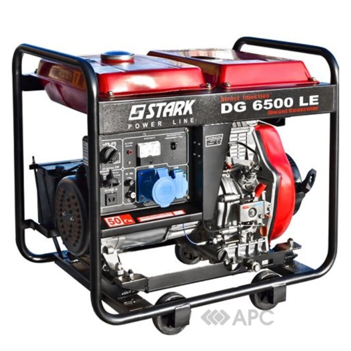 Генератор дизельний Stark DG-6500 LE – пристрій, який врятує під час відсутності електроенергії або забезпечує можливість працювати приладам у разі неможливості підключення до електромережі. Генератор може працювати до 5,1 годин, це доволі хороший показник. Чотирьотактний двигун обладнаний системою повітряного охолодження, що продовжує термін служби. AVR – автоматичне регулювання напруги забезпечує захист від падіння чи скачків напруги. Автономне джерело напруги обладнане електростартером з батарейкою на 30 А/г. Генератор дизельний Stark DG-6500 LE оснащений однією розеткою на 32 А. З таким приладом ви завжди будете мати джерело живлення для вашим пристроїв.