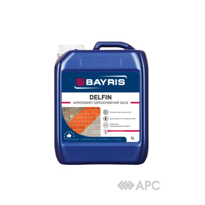 Гідроізолюючий акриловий засіб Байріс Delfin утворює тонкий гідроізоляційний шар, який підвищує надійність та довговічність оброблюваних поверхонь. Призначений для нанесення на бетонні, залізобетонні, кам’яні, цегляні, азбестоцементні, а також на цементно-піщані штукатурні покриття та огорожі. Захищає основи від руйнівного впливу води та ультрафіолету. Може застосовуватись як для внутрішніх, так і зовнішніх робіт. Байріс Delfin надає матеріалу легкий блиск, підвищує стійкість поверхні до морозу.