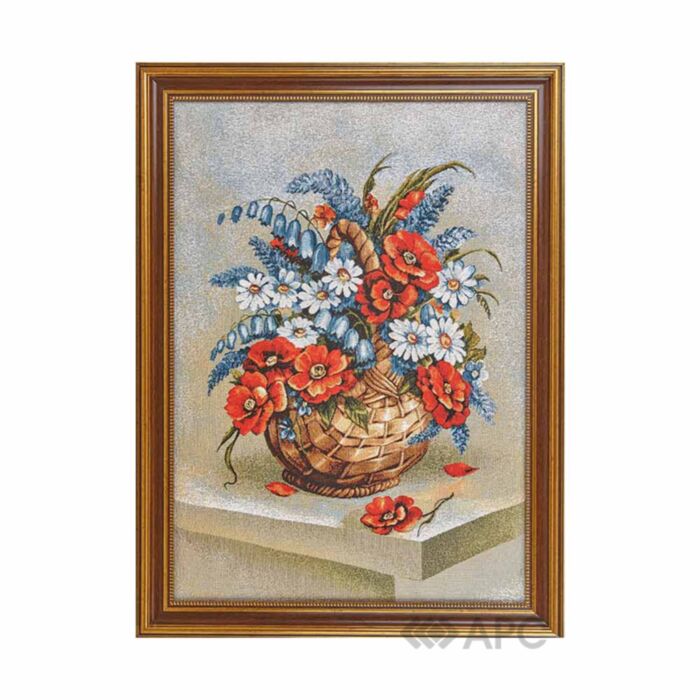 Гобелен "Букет у кошику. Червоні квіти" 669Д-3 це декоративна тканина, що відрізняється від інших своїм унікальним переплетенням ниток, яке утворює сюжетний або орнаментальний малюнок. Раніше гобелени виготовлялися вручну, і мали досить високу вартість. У наші дні, для виробництва таких виробів є сучасне обладнання, що значно скорочує виробничі витрати і робить гобелени доступними для покупців. Гобелен це відмінне рішення для Вашого будинку.