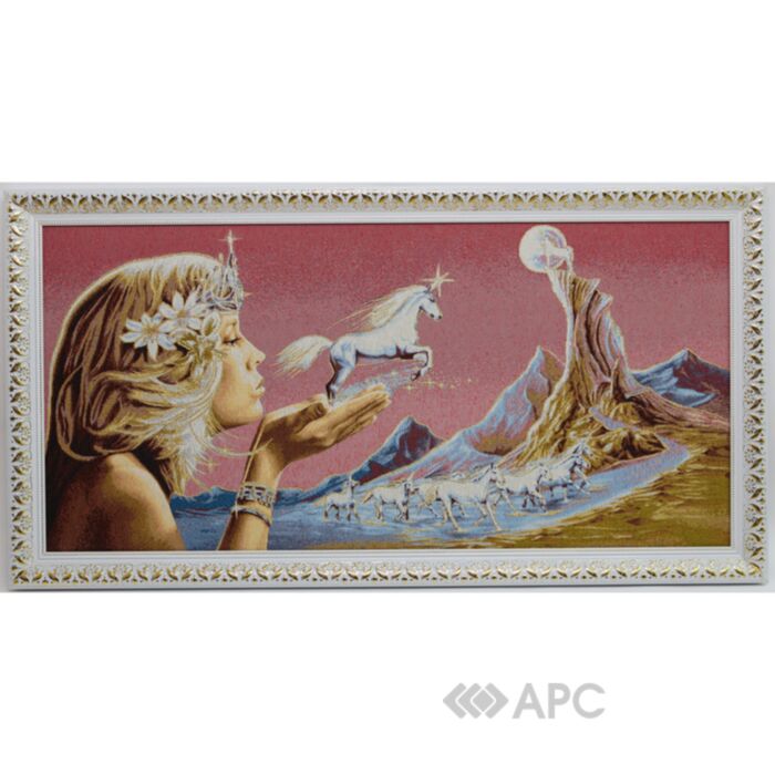 Представлений виріб гобелен "Фея дельфінів" 804-4 виготовляється за особливою методикою. Це копія малюнка, виконана на тканому полотні. Сучасні технології дозволяють створити машинні полотна, що мало відрізняються від дорогих полотен ручної роботи. Сюжет даного гобелена підійде для вітальні, спальні або навіть просторої кухні. І подарує вам відчуття гармонії і краси. Такі картини (гобелен) купити можна і для себе і на подарунок для дорогої вам людини.