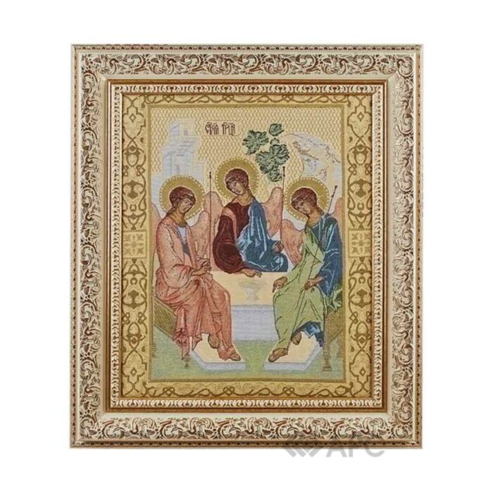 Представлений гобелен "Свята Трійця" 101-6А виготовляється за особливою методикою. Це копія малюнка, виконана на тканому полотні. Сучасні технології дозволяють створити машинні полотна, що мало відрізняються від дорогих полотен ручної роботи. Сюжет даного гобелена підійде для вітальні, спальні або навіть просторої кухні. І подарує вам відчуття гармонії і краси. Такі картини (гобелен) купити можна і для себе і на подарунок для дорогої вам людини.
