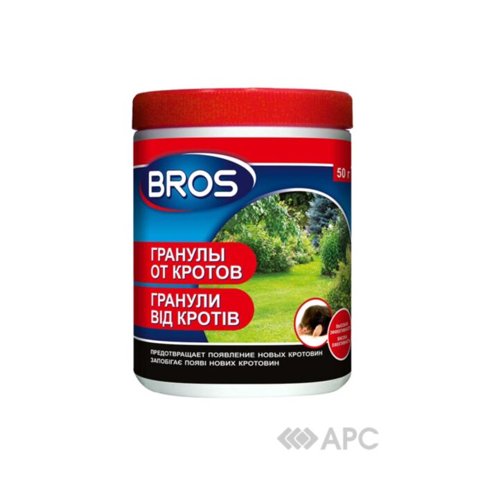 Гранули від кротів Bros — дієвий засіб у вигляді апетитної приманки для знищення шкідників. Отрута діє максимально швидко, адже у складі містяться лише ефективні компоненти. Для застосування достатньо засипати невелику кількість у кротовини. Продукція польського бренду отримала чималу популярність завдяки високій якості та доступній вартості. Серед головних переваг варто виділити зручний формат та довготривалий результат.
