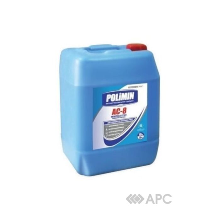 Грунтовка Polimin Універсал-грунт АС-8 використовується при виконанні облицювальних і підготовчих штукатурних робіт, а також при влаштуванні системи підлоги. Продукт призначений для внутрішнього застосування на мінеральних основах, зміцнює оброблені поверхні та зменшує рівень водопоглинання. Грунтовка проникає глибоко в будівельний матеріал, сприяє поліпшенню зчеплення з наступними покриттями, а також дозволяє збільшити час пластичності розчинних сумішей (плиткових клеїв, наливної підлоги). Грунтовка Polimin Універсал-грунт АС-8 являє собою водну дисперсію акрил-стірольного сополімера з модифікуючими добавками, має помірний специфічниий запах, колір - молочно-білий з фіолетовим відтінком. Продукт поставляється готовим до нанесення з витратою 100-200 мл/м2. Упаковка - пластикова каністра місткістю 10 л.