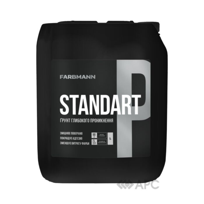 Грунтовка Kolorit Farbmann Standart P 2 л — спеціальний склад, який зміцнює та стабілізує основу, підвищує зчеплення між шарами облицювального матеріалу, запобігаючи його відшаруванню. Глибокопроникна суміш вже готова до використання та готує основу до нанесення силіконових та силікатних матеріалів, що включають також фарби, клейові й підкладкові склади. Грунтовкою покриваються цементні, цементно-вапняні, вапняні, гіпсові та інші основи як всередині, так і зовні будівлі.
