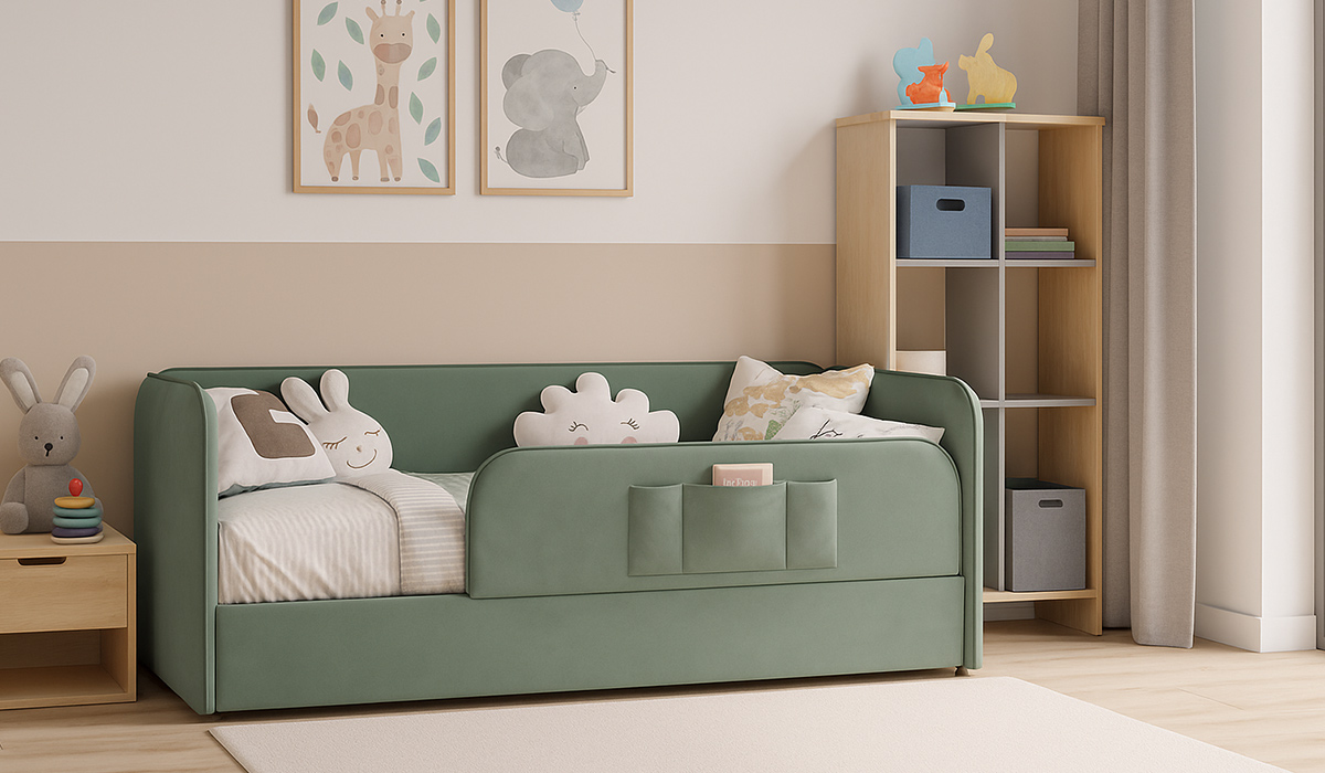 З появою на світ малюка дорослі прагнуть створити ідеальний безпечний простір, в якому дитина отримає найперші цінні установки, які формуватимуть її особистість. В першу чергу йдеться про облаштування дитячої кімнати, де буде проведено багато часу в любові, ніжності, цікавих іграх та нових досвідах. Тут почнеться незабутня мандрівка пізнання світу, тому кожна деталь має сприяти щоденним радощам гармонійного розвитку. Для перших кроків та хитких прогулянок відмінно підійде ламінат Kronospan Vintage Classic K473 Модрина Перлина Сканді 4V 10 мм, що забезпечить теплу і приємну долівку для дитячих ніжок. Світлі стіни з веселими картинами в пастельних тонах сприяють розвитку і зміцненню нервової системи, тому фарба гумова Farbex універсальна бежева 1015 3,5 кг та фарба гумова універсальна Farbex біла 6 кг стануть найкращим вибором для оздоблення. Плінтус Оміс МДФ білий матовий 80*16*2400 мм захистить нижню частину стін, додаючи структурності та тонкого обрамлення. Неперевершеним куточком спокою і затишку малюка є ліжко Woodsoft Rio з бортиком 90*200 см Cloud 33 зелене. Тут живе казка й колишуться дитячі мрії, сумує хмаринка, а сонячний зайчик розповідає їй втішні смішинки. Дитинство солодко позіхає і набирається сили для нових пригод.