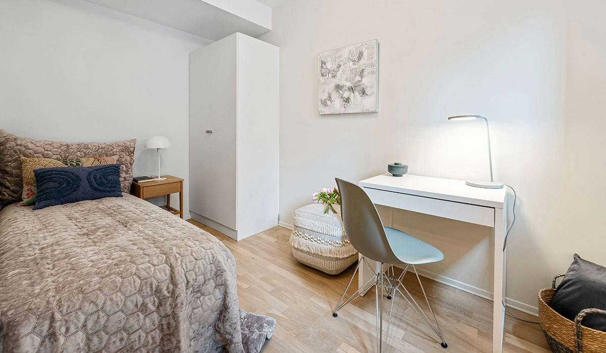 Облаштування дитячої кімнати природно передбачає створення комфортного простору для відпочинку, місця для гри та навчання. Відмінним рішенням для оздоблення підлоги буде ламінат Kronospan Super Natural Classic K485 Дуб Нейчрал Стерлінг 4V 8 мм з теплим відтінком деревини. Основним акцентом інтер’єру є зручне ліжко Laser LASZ01 0,9, що забезпечує корисний відпочинок для дитини. Приємну м’якість і тепло дарує покривало ТЕП Велюр 240*260 капучино. Освітлення дитячого простору відіграє важливу роль у концепції кімнати, тому настільна лампа Berger 1042-TL-9 LED 9 Вт 4000K USB White використовується для активної діяльності, а настільна лампа Vio Concept VCDS-T00583-WH White створює атмосферу затишку перед сном. Щоб речі малого мешканця не загромаджували корисну площу приміщення, їх можна акуратно розмістити в наборі кошиків плетених Art-pol 145442 3 шт. Рельєфність картини та текстильних виробів додають казковості та багатовимірності, що сприяє розвитку уяви та фантазії.