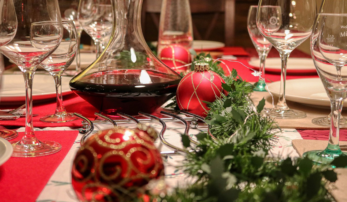 Магія скла розкриває свої таємниці у святковому декоруванні столу. Багряні барви серветок та ялинкові іграшки скляні ручної роботи Orbital Д-449 10 см червоних з позолотою підкреслюють врочистість атмосфери та естетику свята. Наперон новорічний гобеленовий Limaso HOME-37 37*100 см елегантно доповнює однотонну скатертину та врівноважує яскраві кольори. Йому в тон підходять тарілки десертні Tescoma Crema 387020 20 см для кожної особи. Ефектний декантер Bohemia B31B01 1200 мл виконує свою практичну функцію аерації вина та розкриває глибину кольору напою. Чарки для лікеру Ecomo Lumous GB08R3988 95 мл 6 шт та келихи для вина Bohemia Amoroso 40651 280 мл 2 шт сяють прозорістю столового скла, в них мрійливо блищать грайливі вогники новорічної гірлянди.