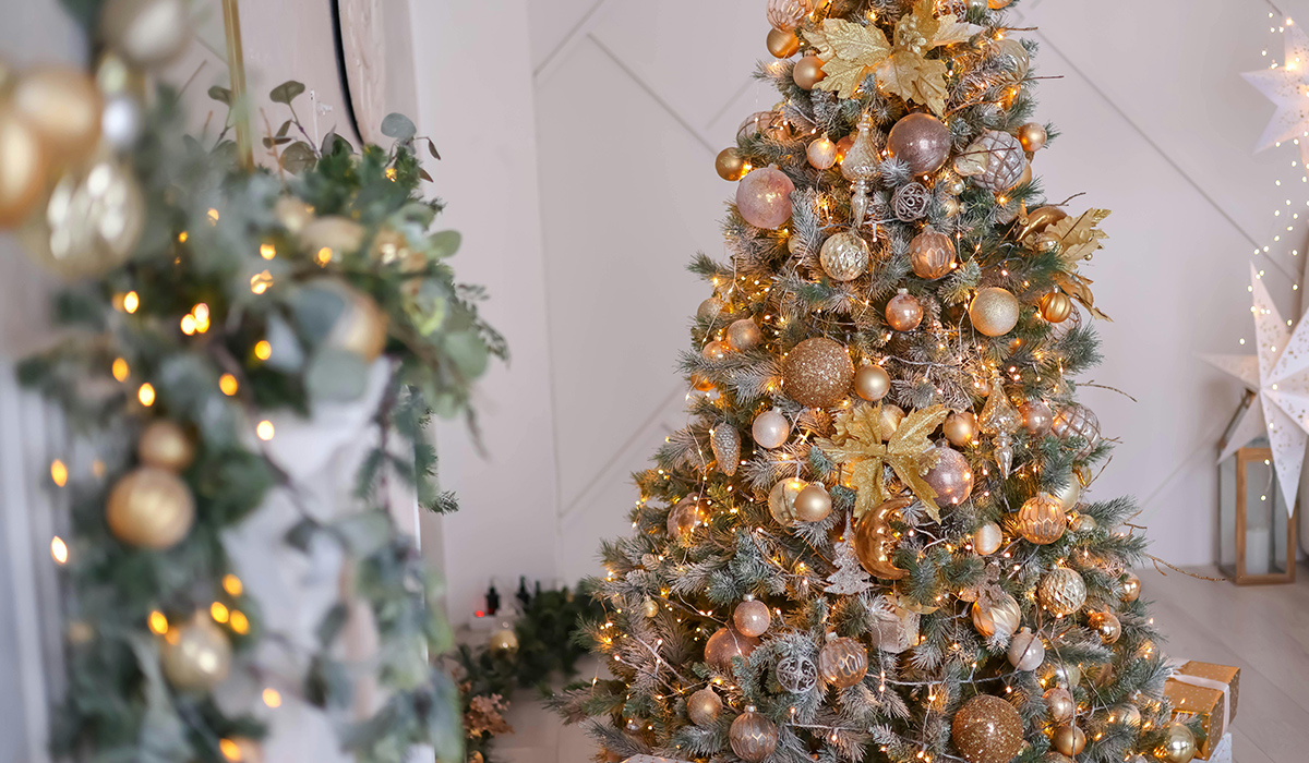 Різдвяна ялинка – чарівний атрибут зимових свят, що приносить приємні емоції дітям і дорослим. Прикрашати новорічне деревце означає продовжувати традиції та дарувати радість рідним і близьким. Справжню зимову казку подарує ялинка Віденська засніжена 210 см, прикрашена іграшками на ялинку куля BonaDi 787-473 10 см шампань. Виблискують позолотою на ялинці набір ялинкових прикрас шишки BonaDi 147-124 та ялинкові іграшки скляні ручної роботи "Недекорована" Orbital 8 см золотий глянець. Ніжні бежеві відтінки набору ялинкових куль BonaDi 147-554 26 шт карамель гармонійно доповнюють блискучий шарм декорацій. Святкові вогники гірлянди Altalusse INL-2108U-200 Warm 200 LED 10 шт 2 м теплого білого світла дарують атмосферу затишку і чарівного передчуття дива. Оздоблення інтер’єру у світлих кольорах підкреслює яскравість новорічного декору, а ламінат Rezult Diamond D220 Дуб каньон гірський 32 клас 8 мм творить елегантний фон для золотих відтінків прикрас.