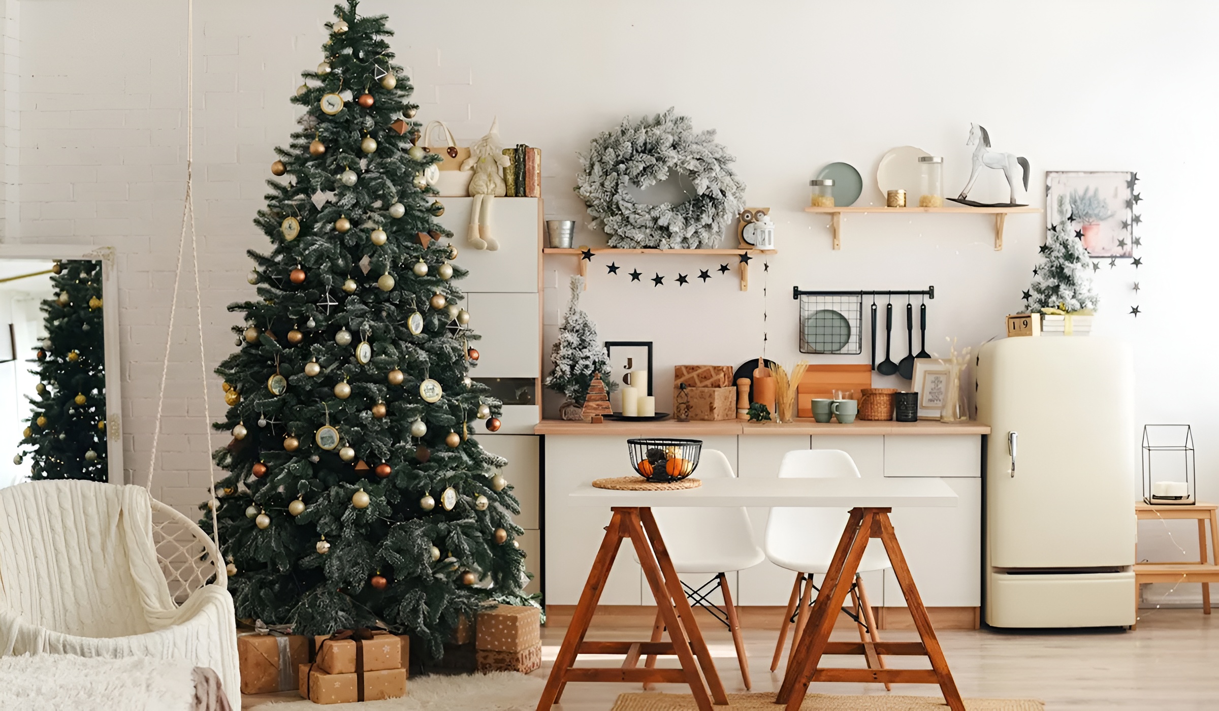 Свята починаються з кухні: з давніх і нових записів рецептів, з поповнення холодильника необхідними продуктами, з чашечки імбирного чаю для натхнення. А натхнення буває різним – і ось ви замість місити тісто на пряники, прикрашаєте ялинку Ковалівську литу 250 см золотими і коричневими кулями BonaDi 147-295 6 см 24 шт та BonaDi 47-044 26 шт, наспівуючи “Щедрика” та “Нова радість стала”. Піднімаєтесь нагору етажеркою-драбиною Happy Lounge карамель лайт, щоб прикріпити яскраву верхівку, розвішати гирлянду та покласти на полицю вінок декоративний засніжений. І вже ваша білосніжна кухня, оздоблена гіпсовим каменем Gipsanit Rustika білим 0,67 кв.м, стала не лише натхненням для улюблених зимових страв, але і яскравою фотозоною для важливих спогадів і святкових традицій.