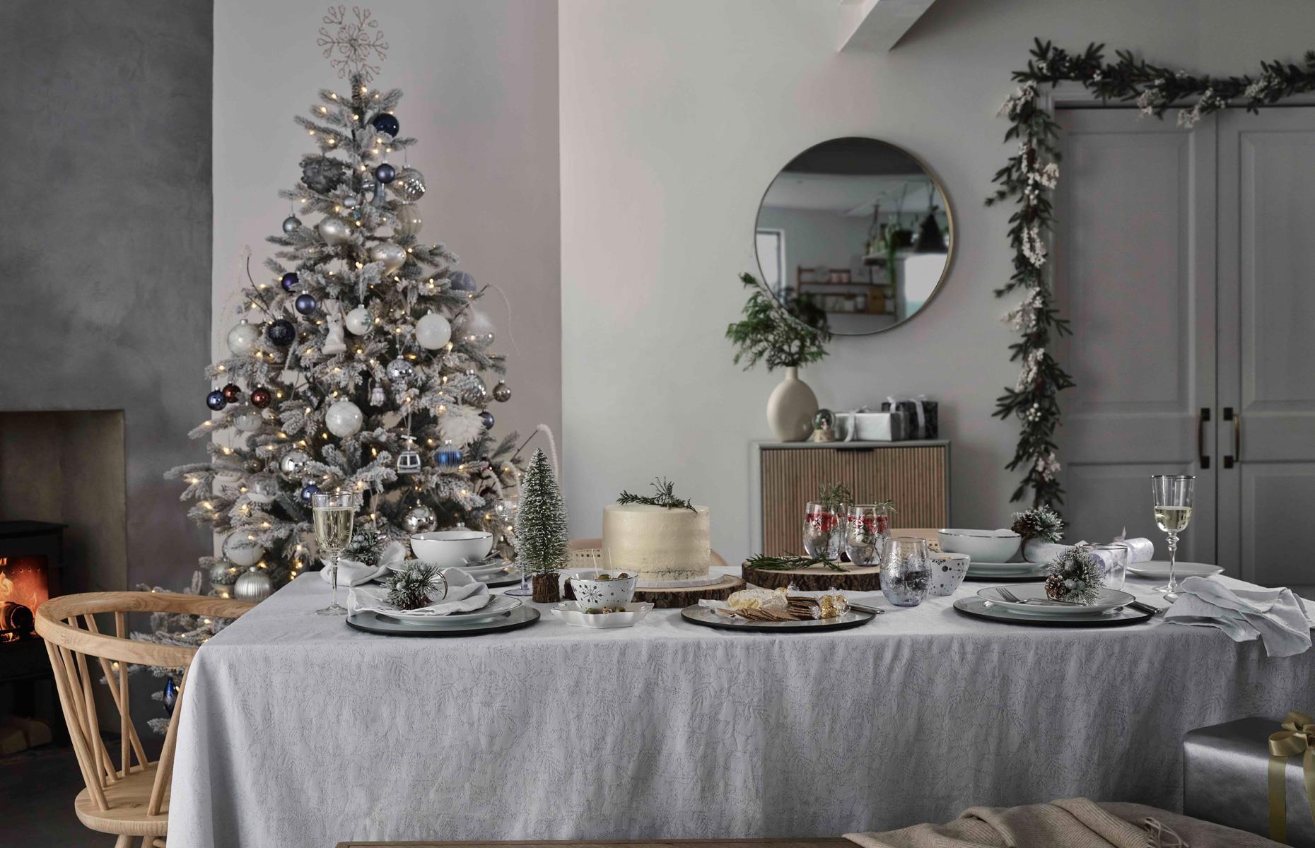 Новорічний інтер'єр їдальні з ялинковими кулями BonaDi та Orbital