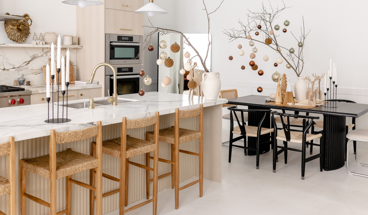 Сучасна кухня з мінімалістичним новорічним декором