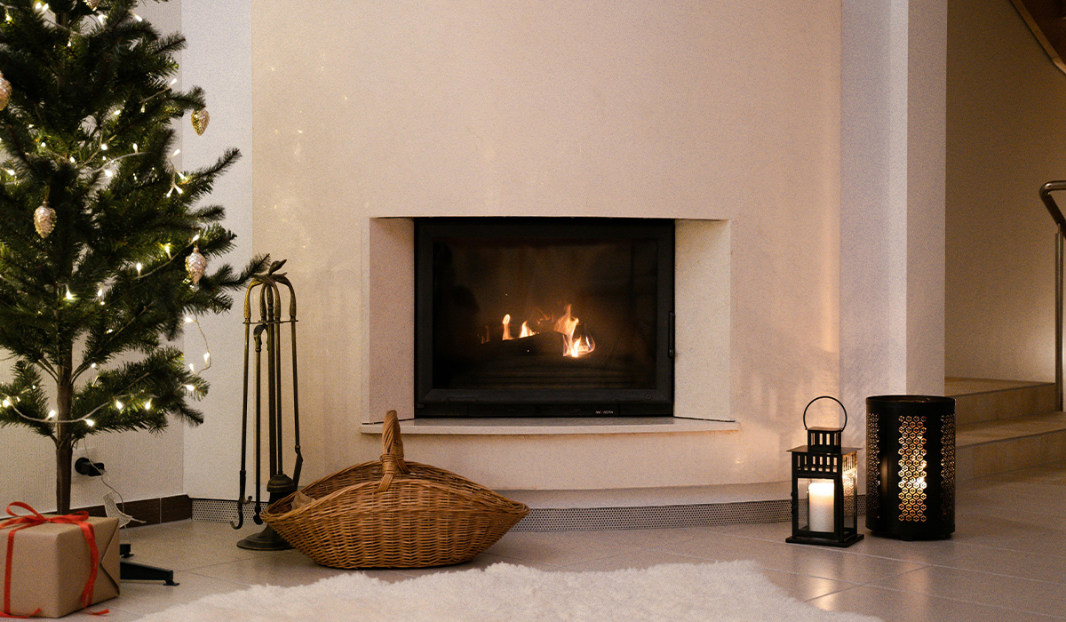 Камінна зала – це особливе місце в домі, де краса і затишок дарують приємний відпочинок та насолоду. Природне полум’я та штучне світло тут головні герої, що диктують казкову атмосферу та гру світлотіней. Матова підлога, вистелена керамогранітом Cersanit Normandie Dark grey 29,7*59,8 см темно-сірого кольору, м’яко вловлює химерні блиски вогню і сяє гладкістю поверхні. Стіни оздоблені фарбою інтер'єрною Miks Color Mattlatex стійкою до миття і стирання 10 л 14 кг. Камінний набір Vesuvi №3 24*70 см забезпечить комфорт у розпалюванні та підтримці вогнища. Поблизу розмістилася ялинка Бескидська лита Rattwood 3849 180 см темно-зелена, оздоблена в стильному мінімалізмі. Тут сяють теплі вогники гірлянди Delux STRING С 200LED IP20 10 м білий/прозорий та блиски новорічного набору ялинкових прикрас шишки BonaDi 147-082 та BonaDi 147-527 з глітером 8 см 4 шт. Розлогий кошик на дрова та стильні ліхтарі додають кімнаті природного затишку та спокою.