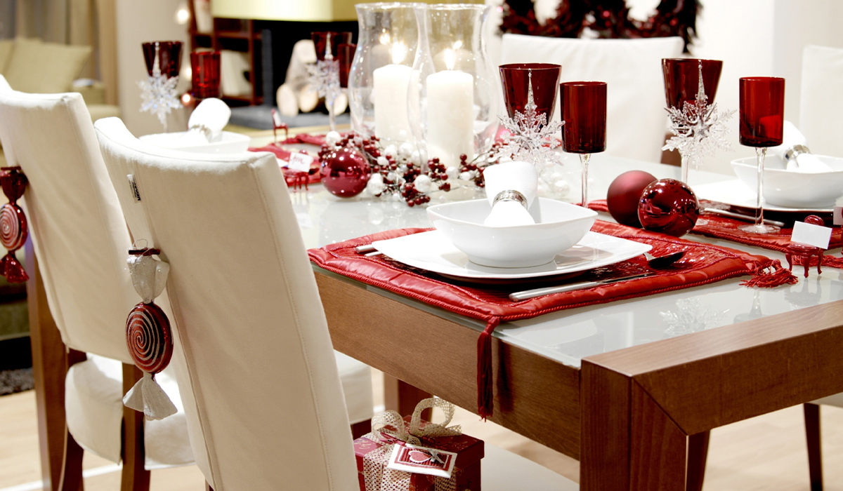 Естетичне оформлення святкового столу подарує гарний настрій гостям та підкреслить імідж господині. Червоно-білі барви здавна належать кольорам Різдва в європейській та американській культурній традиції. Отже, сервірування білосніжного столу багряними текстильними серветками створює базу для вишуканого посуду та цікавого декору. Блюдо квадратне Wilmax 991003 30,5 см з тонкої порцеляни та салатник квадратний Wilmax 992000 15 см складають основний комплект обіднього начиння, вдало доповненого білими текстильними серветками у срібних кільцях. Центральне місце столу займають скляні об’ємні підсвічники Art-pol 71952 PL 30*18 см з набором свічок Art-Pol Metalic 134793 mix 4 шт білої барви, що дарують теплі вогники свята. Композицію світлового оформлення доповнює декоративна гілка Art-pol 158343 66*20*10 см з бордовими ягідками. Набір ялинкових куль BonaDi 47-133 10 см 8 шт підсилюють акценти, створені червоними келихами з тендітними прозорими сніжинками. Вітальня гостинно запрошує доєднатися до врочистої родинної трапези.