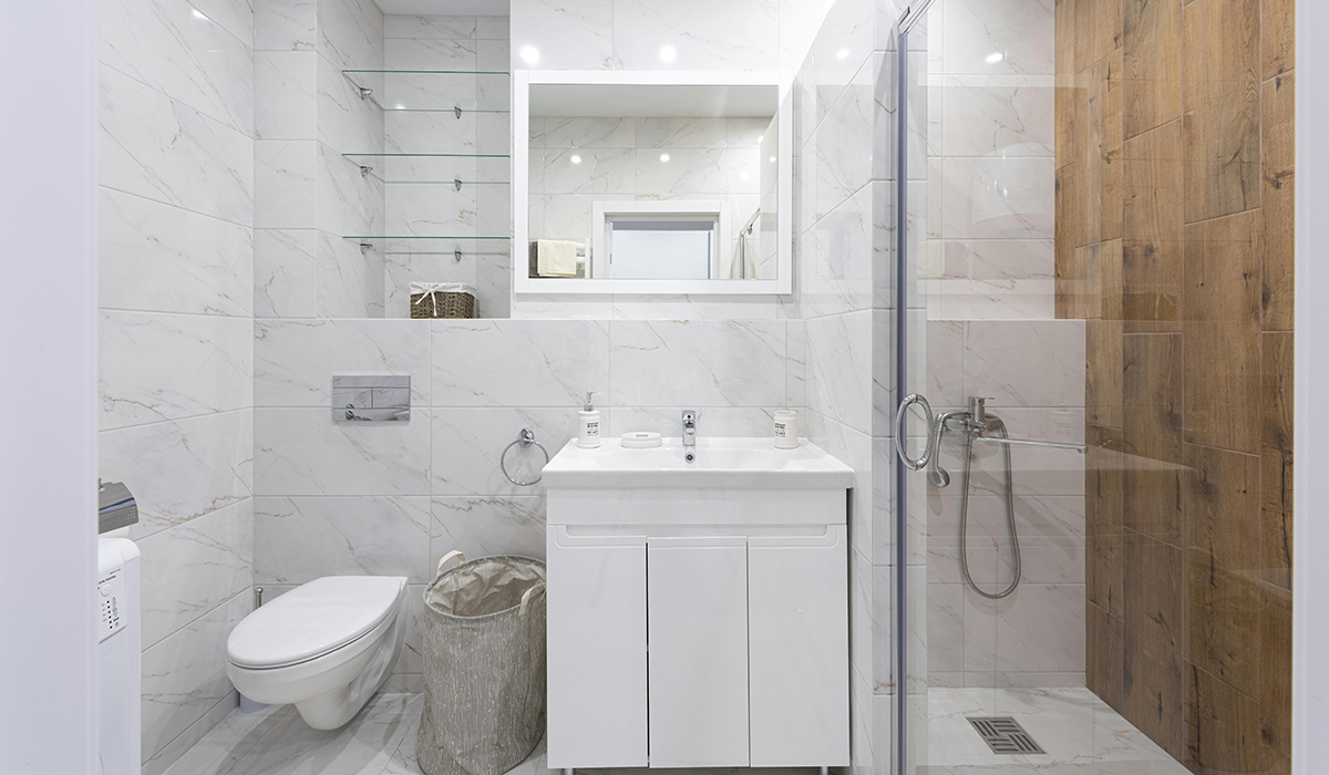 У ванній кімнаті Cersanit Wood Finwood, всі аксесуари підібрані дбайливо, щоб кожен гігієнічний момент проходив в атмосфері невимушеного комфорту. На стінах та підлозі використана плитка Golden Tile Alma City Beach AL0051, що створює враження безкраїх просторів і робить кімнату світлішою і затишнішою. Акцентна стіна в душовій кабіні прикрашена керамогранітом Cersanit Wood Finwood Brown, яка додає текстури та природності. Душові двері Duka Natura 4000 AR-DTW L Pro Care 100 см, легко відкриваються та зручні в експлуатації. Змішувач для ванни Domino Sirius DSV-208 з душкомплектом, який встановлений в душовій кабіні, поєднує в собі елегантний дизайн та практичність. Тумба Aqua Rodos Омега білого кольору з умивальником Еліт 80 см додає функціональності та естетики приміщенню, забезпечуючи зручне зберігання та використання різних предметів. Тримач для рушника Aqua Rodos GLORIA 8113 у вигляді кільця у хромовому виконанні вносить завершений акцент, створюючи не лише практичне, а й стильне місце для текстилю.