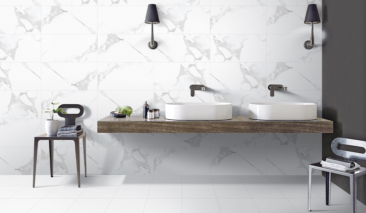 Стильна ванна Ego Ceramics Royal демонструє функціональність та стриманість, підкреслюючи ділову заклопотаність сучасної людини. Білизна підлоги передбачає бездоганну гігієну та легкість у догляді, що забезпечує керамограніт Casa Ceramica Super White Polished 60*60 см. Стіни витримують традиційність білого з химерними розводами та прожилками керамограніту Ego Ceramics Royal Xtreme Statuario carving Rec 60*120 см. Характер і силу чорного втілює бокова стіна, на яку нанесена фарба гумова універсальна Dufa SuperElastik RAL 7024 сірий графіт. Широка стільниця з ефектом деревини пом’якшує чорно-білу гаму та дозволяє розмістити овальні умивальники Adamant Beste new 54*35 см white. Металеві стільці вносять елементи стилю техно та підкреслюють прогресивну особистість інтелектуала.