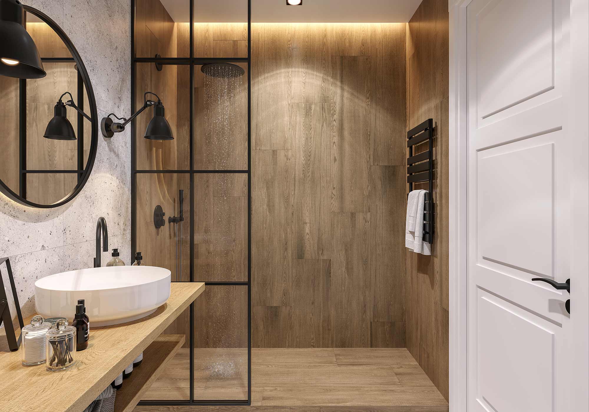 Ванна Golden Tile Terragres Brandy уособлює розкішний та стильний простір, що поєднує в собі класичний та сучасний дизайн. Важливим елементом кімнати є керамограніт Golden Tile Terragres Brandy S27130 30*120 см коричневий, що має спокусливу текстуру натурального дерева. Надає кімнаті естетичний вигляд, створює теплу атмосферу. Дзеркало Арена Loft black 70 см ідеально доповнює дизайн приміщення, візуально збільшує його, додає розкішного, витонченого вигляду. Ваше відображення у цьому дзеркалі буде ідеальним, адже світильник точковий поворотний Feron DL6300 MR16 чорний створить якісне підсвічування всіх необхідних зон обличчя. Змішувач для кухні Kuchinox Dima BQD 768D чорний подарує сучасний вигляд ванній, забезпечить зручне керування водою. Підходить для тих, хто шукає нестандартні рішення у світі сантехніки. Зберігати рушники сухими та завжди готовими до використання допоможе рушникосушка Laris Лавина ЧФЧ10 500*900 мм права чорна, яка є важливою деталлю, що створює комфорт, додає практичності. А як важливо, щоб кожен елемент інтер’єру вдало поєднувався та виглядав стильно, по сучасному. Так, ручка дверна RDA WAVE R матова чорна є останнім дотиком до дизайну, адже вдало поєднується з усією чорною фурнітурою ванної кімнати. Зачинивши нею двері, ви зможете насолоджуватись чудовою атмосферою релаксації у стильному, затишному санвузлі.