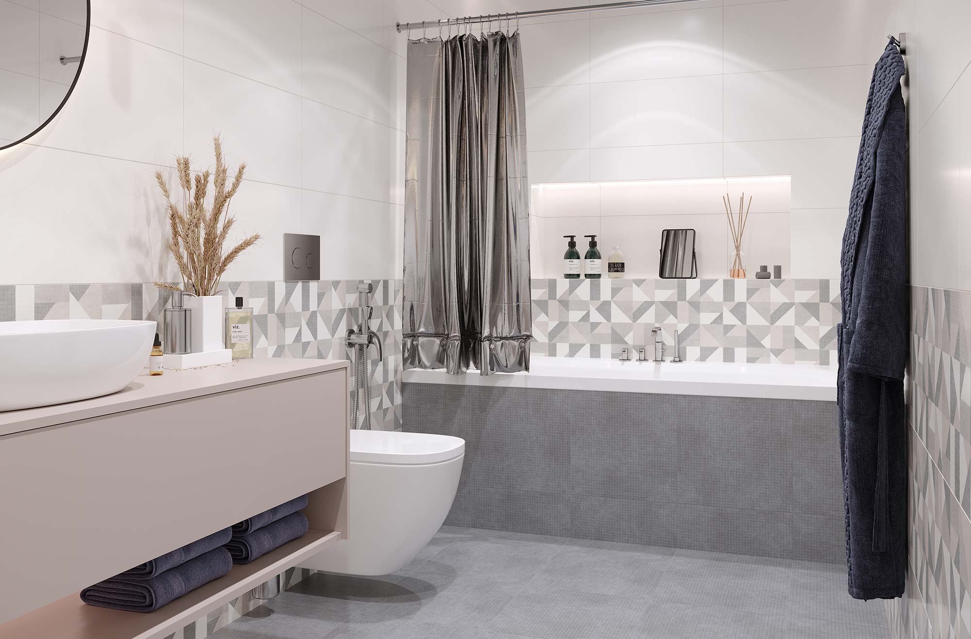 Ванна Golden Tile Moderno — це ідеальне поєднання сучасного та водночас практичного дизайну. У цій ідеї втілюються мрії багатьох користувачів, адже стильна та якісна плитка для стін Paradyz Harmony bianco 30*60 см у комбінації з оригінальною плиткою для стін Golden Tile Moderno Geometry 2NA151 30*60 см айворі нікого не залишать байдужими. Як відомо, перше місце в облаштуванні санвузла відіграє сантехніка. Так, ванна акрилова Riva Figaro 170*75 см стане відмінним місцем для вашого відпочинку після робочого дня. Завдяки стильному та практичному дизайну ви зможете не лише розслабитись, а й покращити свій настрій. Створити більш усамітнені умови можна з карнизом для ванної Arino 36620 разом зі шторкою, який створить не лише комфорт, а й додасть акценту в інтер’єр. Також варто звернути увагу на деталі, адже саме вони надають приміщенню певного характеру. Гачок клейкий MVM HSS-504R SS матовий має не лише стильний дизайн, а й відіграє важливу роль в організації простору. Так, рушник чи банний халат будуть завжди під рукою. Гігієнічний комплект для біде Cristina WJ 676.51 хром призначений для швидкої гігієни, зекономить ваш час та допоможе тримати тіло в чистоті. Проводити час в такій ванній кімнаті лише одне задоволення, а комбінація різноманітної сантехніки неодмінно радуватиме ваше око.