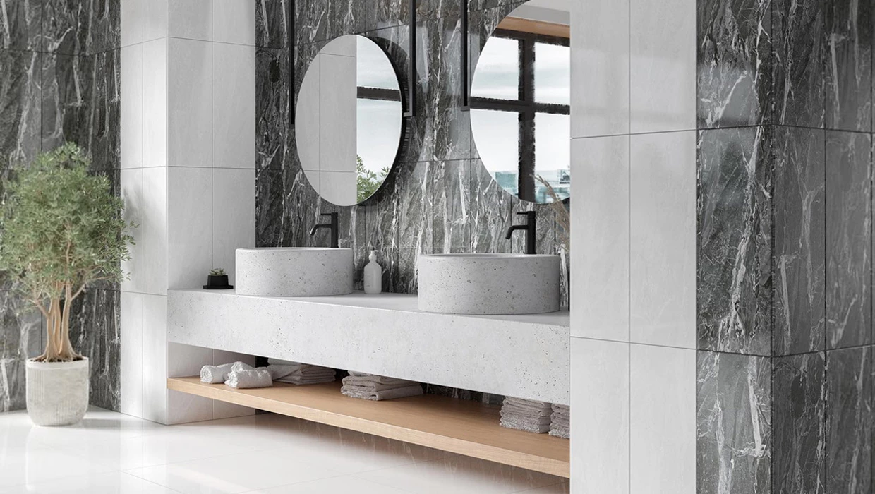 Ванна Intercerama Space вражає своєю індивідуальністю та красою виконання. Ніжний вигляд світлої плитки для стін Intercerama Space 248071 23*60 см світло-сірої візуально збільшує простір, надає приміщенню відчуття чистоти та вишуканості. Сплітаючись в чудовому тандемі із плиткою для стін Intercerama Space 248082 23*60 см чорною ваша кімната вмить набуває розкоші та елегантності. Розгляньте першокласний варіант для підлоги — керамограніт Intercerama Duster 04071 60*60 світло-сірий, який зачаровує своїм зовнішнім виглядом та надасть інтер’єру стриманості, класичності. У такій ванній з’являється бажання проводити якомога більше часу та займатись улюбленими процедурами по догляду за собою. Жоден сантиметр обличчя й тіла не залишиться непоміченим біля дзеркала Aqua Rodos Делла R-Line з декоративною підсвіткою 80 см, що завдяки додатковому освітленню та великому формату дозволить втримати ваш зовнішній вигляд під контролем. Краса та стиль у ванній відобразиться у деталях — навіть змішувач для умивальника KFA Armatura Neda black 5822-612-81 у кожному своєму вигині кричатиме про цікаве бачення речей, жагу до нового та розкіш.