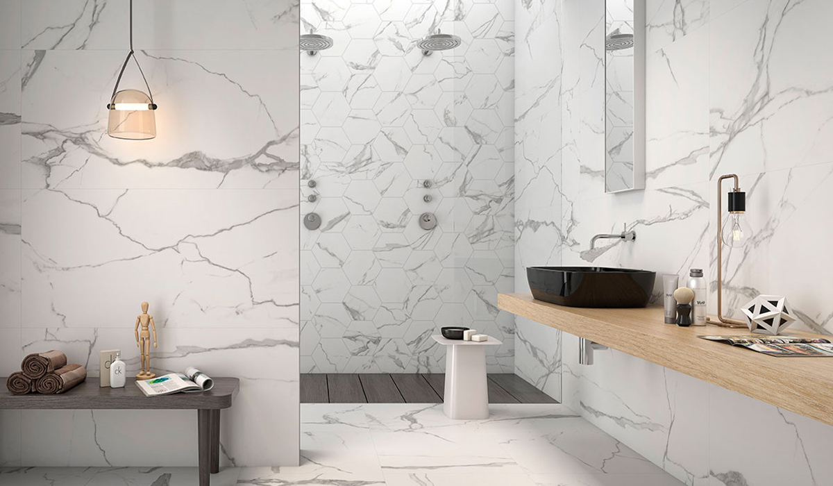 Мармур у ванній – це вічна естетика, непідвладна віянням моди, культурним змінам та розвитку мистецтва оздоблення інтер’єрів. Зразок кімнати на фото зображує красу білого керамограніту Italica McKinley RT GG 60*120 см, який створює завершену картину розкоші й елегантності. Світлий фон легко поєднується з полицею в кольорі натурального дерева та виразними темними деталями. Чорний умивальник KFA Armatura Kleo 1074503-00-21000-PP настільний 50 см створює яскравий стильний акцент та додає контрастів, увиразнюючи природний малюнок плитки. Він обладнаний змішувачем для умивальника KFA Armatura Moza Chrom 5039-810-00 прихованого монтажу, що легко доповнює його функціональність. Дзеркало Респект-М Style stm-60 допомагає створити гармонію та симетрію в інтер'єрі, врівноважуючи пропорції сантехніки та оздоблення. Довга полиця дозволяє розмістити потрібні речі, декор чи навіть настільну лампу Nowodvorski Monaco 9308 чорну за потреби додаткового освітлення. Для приємного щоденного комфорту у ванній варто обрати рушники махрові Soho Dense Cappuccino 30*50 см капучино з високоякісної махрової тканини. Вони дарують ніжні відчуття вашому тілу та теплий затишок інтер’єру.