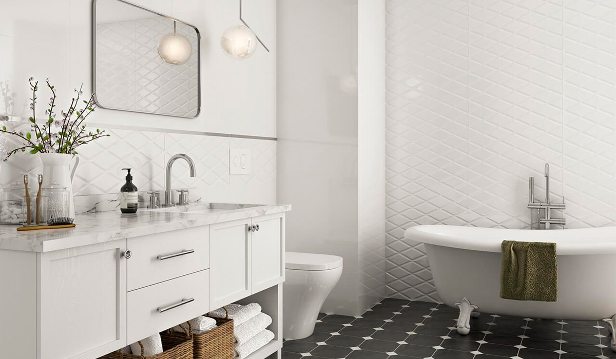 Ванна Paradyz Moonlight — це кімната яку формують лише якісні та стильні предмети інтер’єру. Основу кімнати та загальний настрій формує універсальна плитка для стін Paradyz Moonlight bianco Rec 29,5*59,5 см біла, що стає відмінним тлом для цікавих меблів. Натомість плитка для стін Paradyz Moonlight bianco Str B Rec 29,5*59,5 см біла, формує ексклюзивне, дизайнерське рішення, яке створює акцент у потрібному місці.