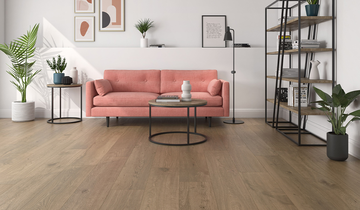 Мінімалізм просторої вітальні вражає легкістю і практичністю базових деталей. Природність та гармонію підлоги забезпечує міцний ламінат AGT Effect Solaro 912 32 клас V-4 8 мм, він створює естетичне покриття, що наповнює затишком простір кімнати. Ідеальну простоту і чистоту стін забезпечує інтер'єрна фарба акрилатна Eskaro Akzent SPA біла 2,7 л.Функціональний комплект журнальних столиків Signal Atlanta D II чорний дозволяє створити комфортну зону для чаювання, роботи чи дозвілля у будь-якій частині приміщення та насолоджуватися практичністю таких важливих аксесуарів. Сміливим яскравим акцентом є диван Ліберті рожевий, що облаштовує зону відпочинку з атмосферою легкої романтики та мрійливої безтурботності. Витончену стилістику демонструє торшер Nowodvorski Eye super 6506 чорний біля дивана, чітка лінія якого продовжує гармонію опор стелажа. Геометрію стіни збагачує фоторамка Marco Decor 1417-64 21*30 см біла, а велика кількість вазонів освіжає простір та підкреслює любов до природи господарів дому.