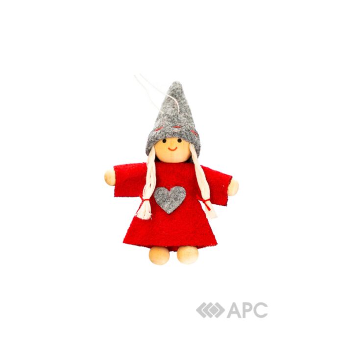 Іграшку "Дівчинка в червоній сукні" Elisey 009NV можна повісити, як на ялинку, так і поставити на стіл або журнальний столик, витончено прикрасивши декоративними стилізованими свічниками, новорічним віночком і застеливши різдвяну скатертину. Прикраса виготовлена із фетру та деревини.