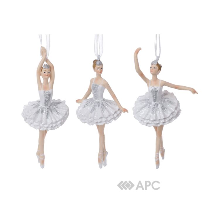 Іграшка на ялинку Балерина BonaDi 13 см 3 дизайни — це витонченість та тендітність, що стануть чудовим доповненням до Вашої колекції ялинкового оздоблення. Дизайн надихався вінтажними іграшками та пропонується в асортименті із трьох моделей. Ніжність ідеально передає довершена деталізація: акуратна промальовка, фактурні лінії, поверхня з блискітками. Колірна гама в білих та сріблястих відтінках додасть незабутнього шарму.
